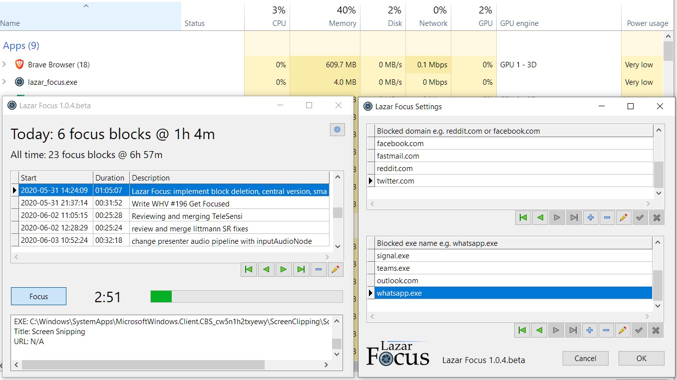 Lazar Focus is the tiny app and website distraction blocker for Windows that can help you to get your work done better, and faster, freeing up more of your precious time.